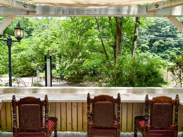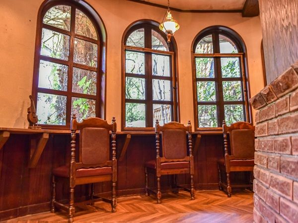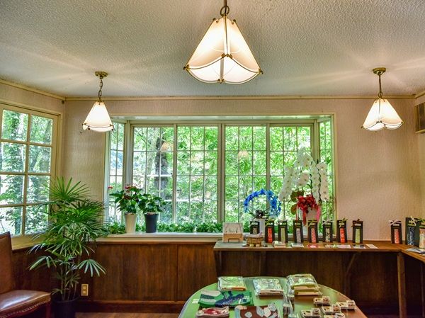 本館の中には、レストランの頃に使われていたテーブルや椅子が使われています。