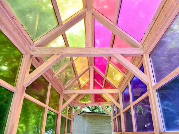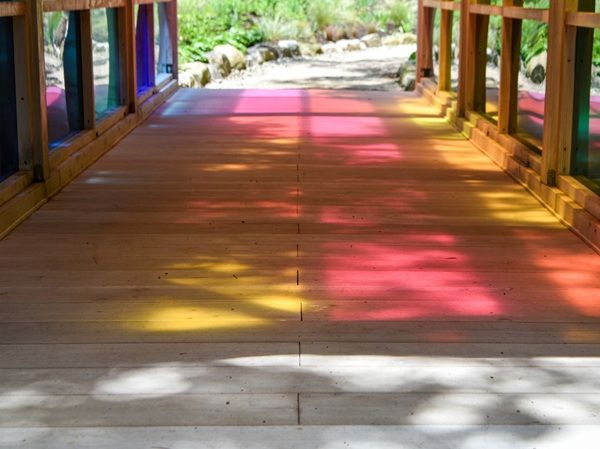 エントランスで入場料を支払い、入口を入ると、見えてくるのが虹色の「万華鏡の回廊」。