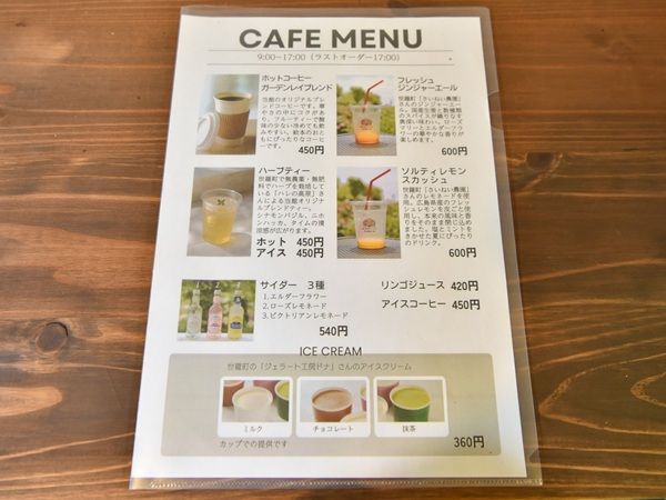 メニューは、今だと冷たいドリンクやアイスクリームがあります。