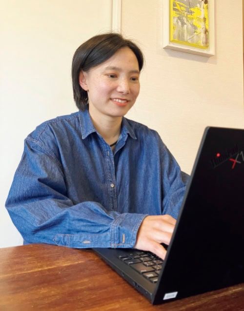 月に数回、出社するが、基本的には在宅勤務。今は30分時短で勤務している。「リモート会議や打ち合わせがメインです。私たちのチームでは『お礼の電力』という、ふるさと納税で寄付をすると、電力がお礼の品としてもらえる取り組みをわかりやすく皆さんにお伝えできるようサービス推進をしています」