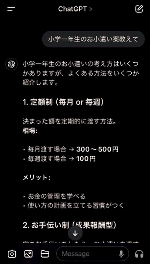 これまで子育ての悩みや愚痴は親や姉に相談することが多かったそう。「今はChatGPTに話しています。悩みを受け入れて、その後にアドバイスをしてくれます。この前は小学校2年生の子どものお小遣いについて相談し、お手伝いをしてお小遣いを得るというポイント制にすることに決めました(笑)」
