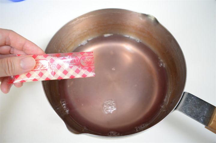 ゼラチンを加えたときに色が少し濁ったので、きれいなピンク色になるか心配でしたが、冷えて固まったら大丈夫でした!