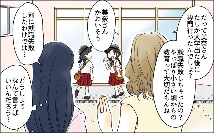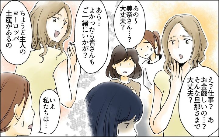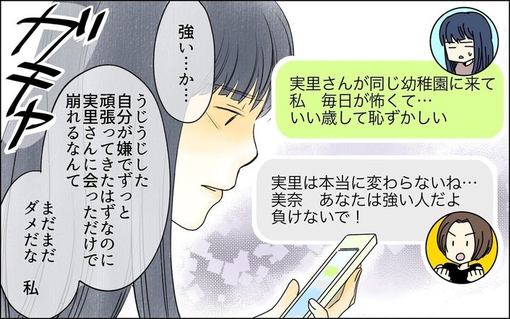 ・うわあ…何かこれ、単なるママ友問題だけでは片付かないような気がする。学生時代にイジメを受けていたことは私もあるので、美奈さんの心の傷、よくわかります。そして、それを愛する人に知られるのが恥ずかしくて怖い。こう思ってしまうのもわかります。自分を散々イジメて来た実里さんが最近になって身近に近づいてきたことで、今後も地獄が予想できる。夏海さんに相談すべきか否か。これから先が不安です。