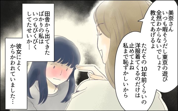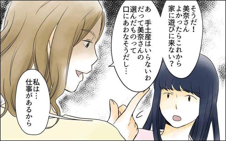 ・実里さん、何でこんなに美奈さんに執着するのでしょう。親切心を装ったイジメの延長としか思えませんが、どうもこの実里さん、みんなの前で見栄を張っているだけで、実際は恐ろしく不幸そうな気がします。幸せな人だったら、こんな風にしつこく他人に執着しないはず。実里さん、恐ろしく闇が深そう…。