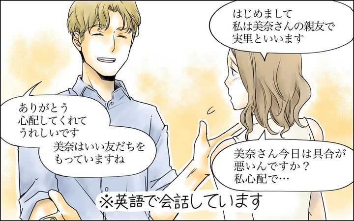 帰宅後、美奈はダニエルに同窓会の感想を聞かれましたが、大学時代の話、実里の話は恥ずかしくて言えないでいました。