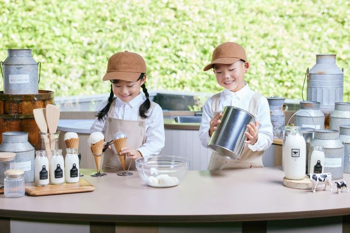 最後には、ファームエリアで放牧している牛から搾った牛乳「トマム牛乳」を使ったアイス作り体験も! 酪農についての事前レクチャーもあるので、はじめて牛とふれあう子どもでも安心です。