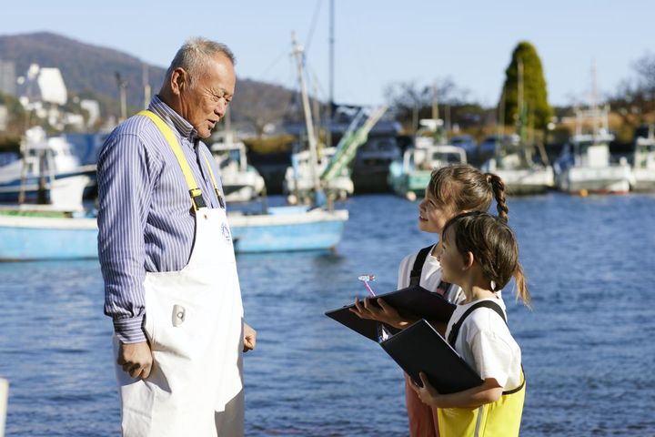 地元の漁師や鮮魚店の協力のもと、漁や荷揚げ作業を体験し、最後に学んだことをワークシートにまとめるプログラムです。