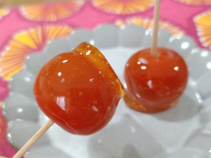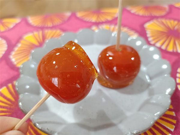 飴の厚みにムラができてしまいましたが、ツヤツヤでおいしそうに仕上がりましたよ♪