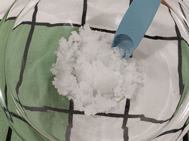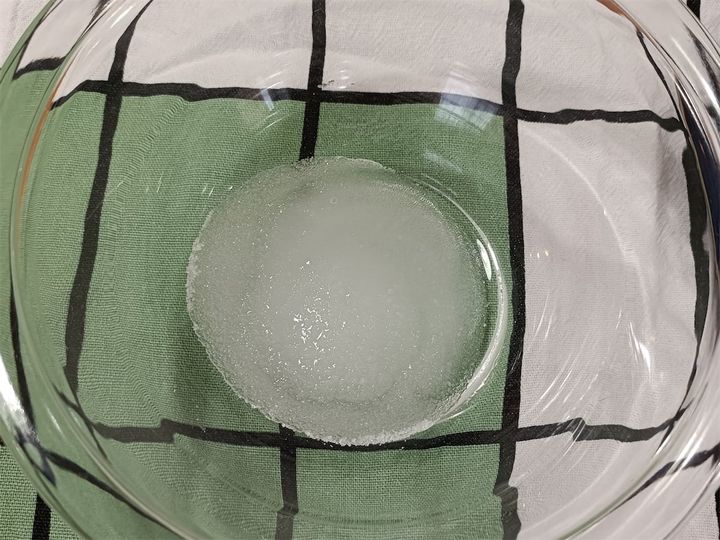 ボウルを取り出してみると…ガーン! 結晶化してしまい、まさかの失敗です…。