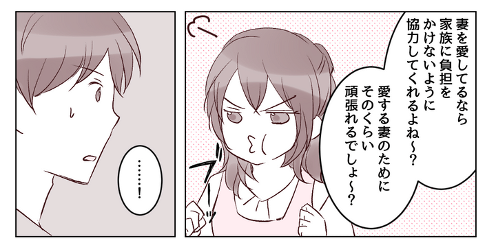 私は夫のマネをしてほっぺを膨らませながら言いました。「妻を愛してるなら、家族に負担をかけないように協力してくれるよね~? 愛する妻のために、そのくらい頑張れるでしょ~?」夫の態度をそのままそっくりお返ししたのです。