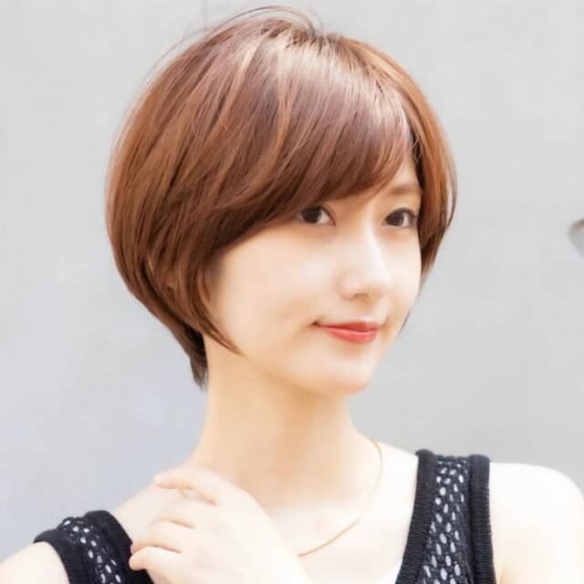 若返り効果を高めるには、髪全体に軽さと動きを出すことがカギ。頬骨ラインで揃えたショートヘアはフェイスラインをすっきり見せ、自然なリフトアップ効果を期待できます。
