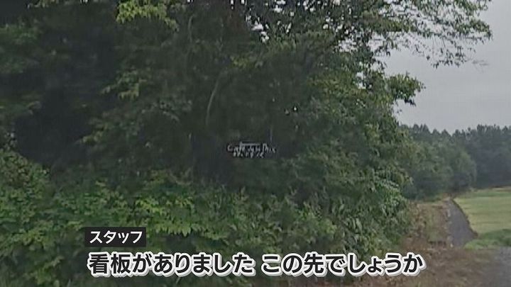 番組スタッフ:「看板がありました。この先でしょうか。ここからは車ではいけなさそうなので歩いていきます」