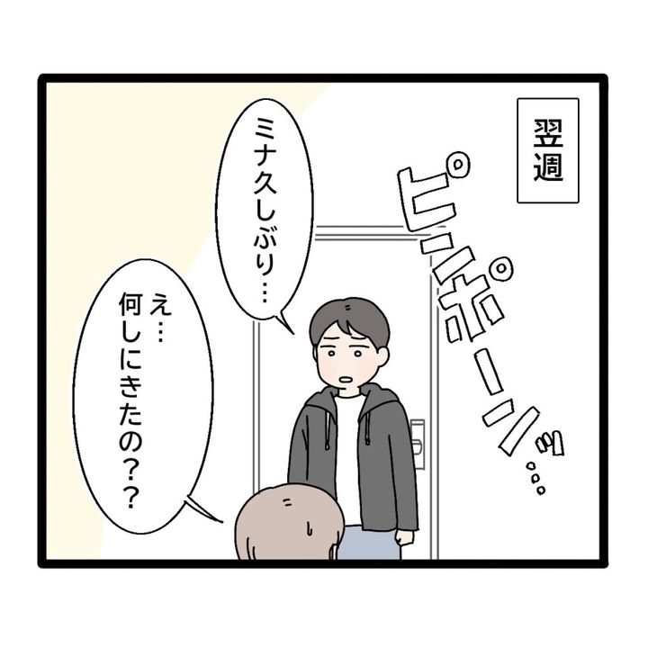 ピンポーン!インターホンが鳴り、出てみると、「ミナ久しぶり・・」そこに立っていたのは伸介!「え・・何しにきたの??」と意味がわかりませんでした。
