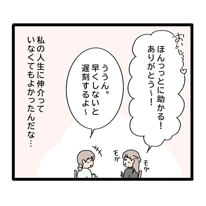 「おいし~!ほんっっとに助かる!ありがとう~!」感激しながら食べてくれるお姉ちゃん。「ううん。早くしないと遅刻するよ~」と言いながら、私の人生に伸介っていなくてもよかったんだな・・と考えていました。