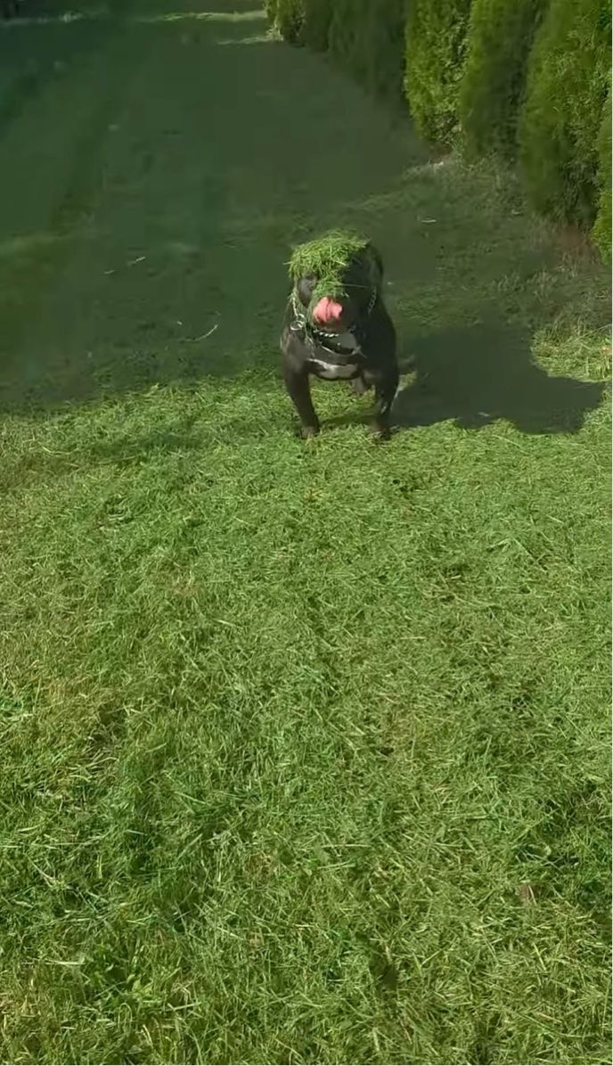 草まみれになったイヌを見た人からは、「カモフラージュしていますね」「とってもかわいいです」「もう少しでイヌの形をした茂みが完成しそうでした」といったコメントが寄せられていました。