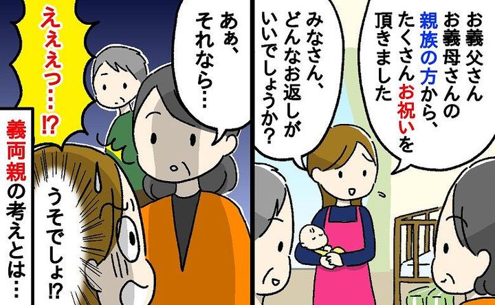 「親戚のお返しは何がいいでしょうか」出産祝いの内祝いについて義両親に相談すると…義母から思いもよらない返答が!