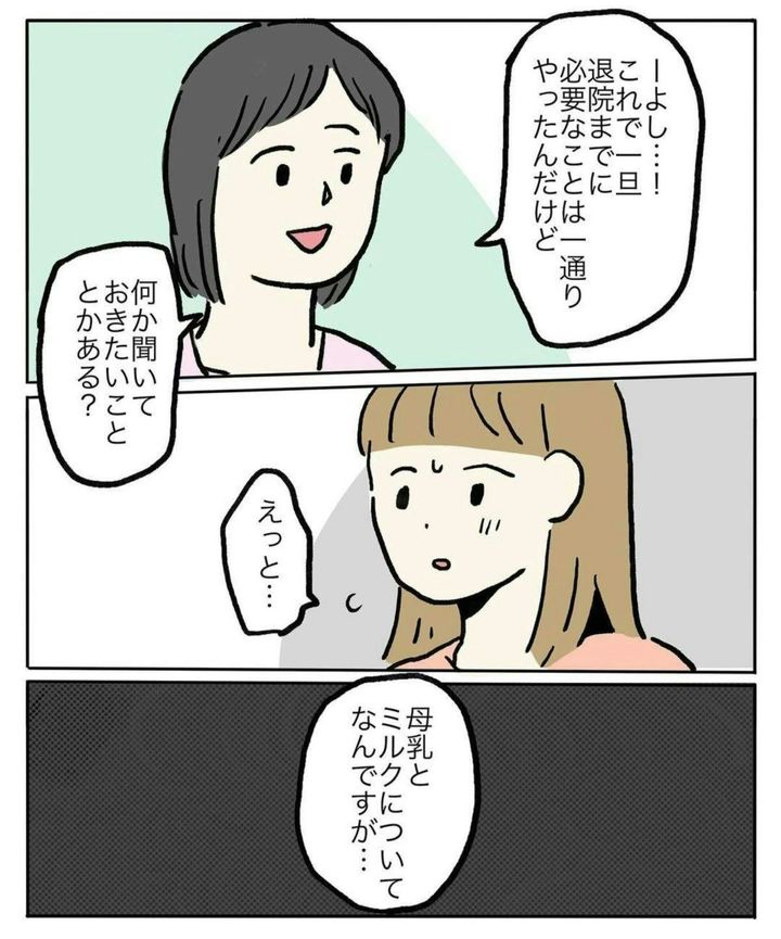 退院とともに、自宅での育児がスタートします。よろこばしい反面、初めてのことで不安だらけですよね。すると、助産師さんはていねいに質問に答えてくれました。
