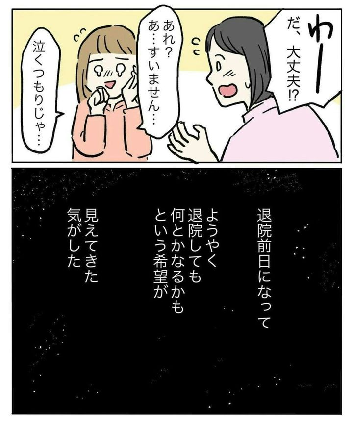 そんな中、夫と面会をした、持田さん。このときはコロナ禍で面会は「10分」と限られていました。心身ともにボロボロの中、持田さんは、しあわせそうな夫に黒い感情を抱いてしまったそうです。ですが、それと同じくらい、夫は自分にとって、「最大の味方」であることも再認識したそうです。