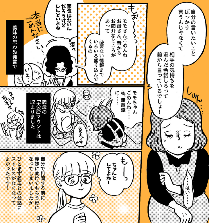 以後、義母の「大変」マウントはなくなり、会話にストレスがなくなりました。
