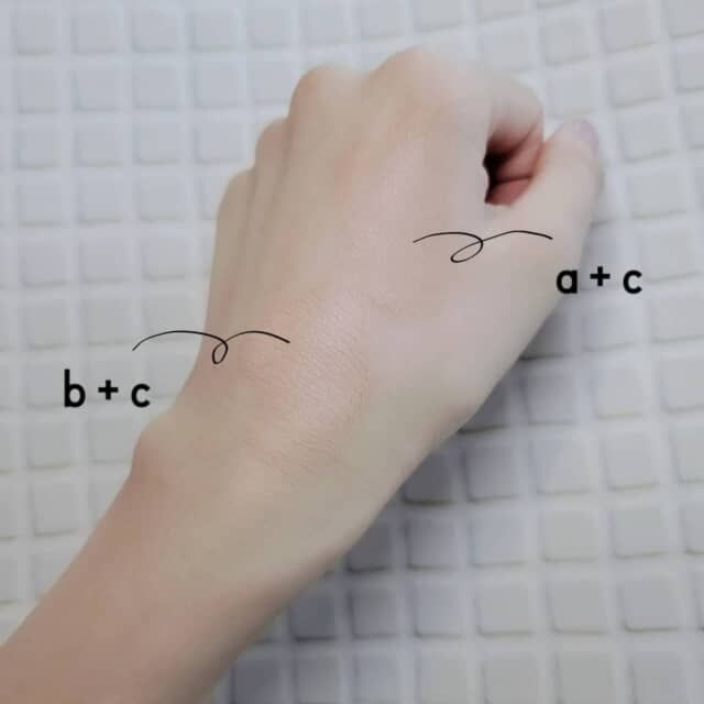 ▲aとbをのせたあとにcを重ねたカラースウォッチ