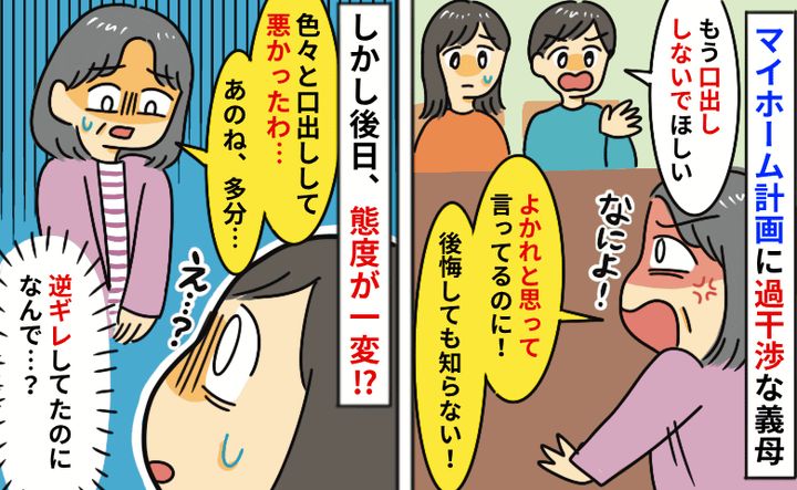 マイホーム計画に過干渉な義母に「口出ししないで」怒って帰った義母が後日謝罪!?態度が変わったワケ