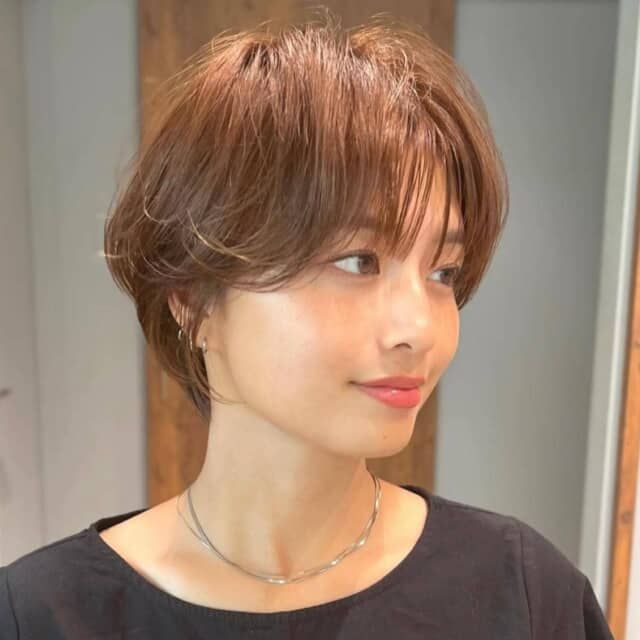 長めショートを今っぽく仕上げるなら、顔まわりに短めのレイヤーを入れるのがカギ。無造作な動きが生まれて小顔見えしつつ、自然な抜け感もアップします。