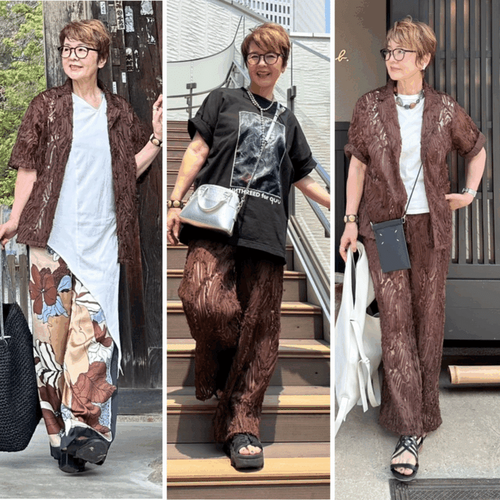 3. 【60代ファッション】レースで涼やか!「しまむら」のセットアップで着まわしコーデ3選&「京料理椿」「薪火焼きFLAMMA」「開運蕎麦」の食べ歩きレポート!