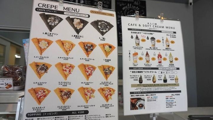 ソフトクリームに、ソフトクリームを使用したパフェ、この店舗限定のクレープまであります。