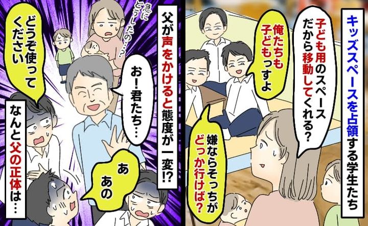 フードコートのキッズエリアを学生が占領「俺たちも子どもだけど〜?」父の声掛けで態度が一変!?なぜ