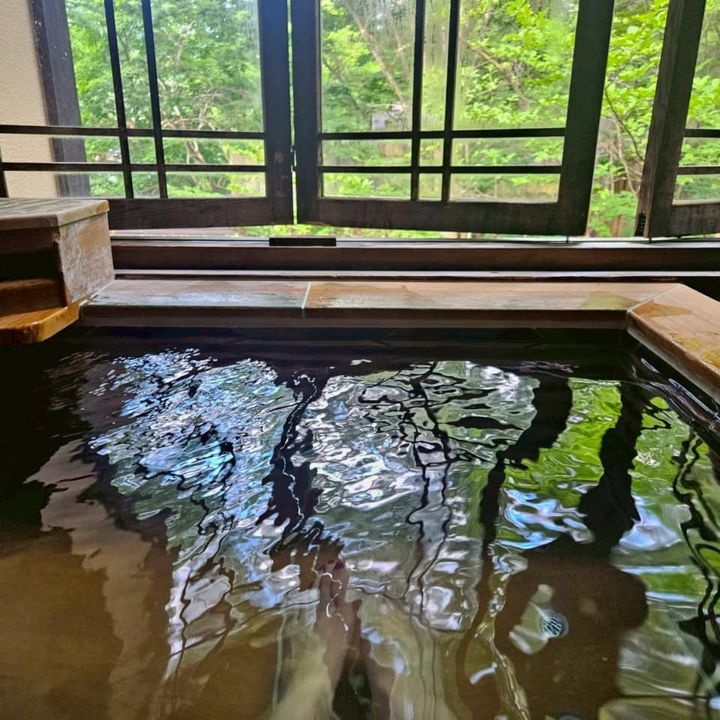 窓を開ければ露天風呂気分が味わえるお風呂。24時間ちょろちょろと温泉が循環しております。朝も昼も夜もずっとお風呂に入っていたい私のような人間にとっては、まさに天国。