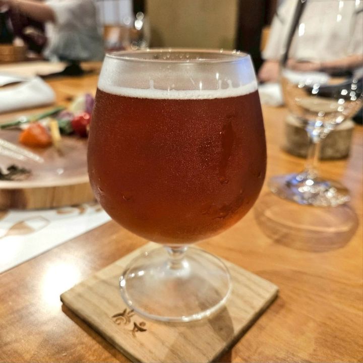 お酒は別料金ですが、飲むよね。地元のクラフトビールの醸造所『オクトワンブルーイング』がここ、尚文のために作った『ヤマビト・エール』をいただきましたが、尚文の『ヤマビト・エール』は生樽から提供されているんです。激ウマ。お食事と合うどっしりとしたお味でした。