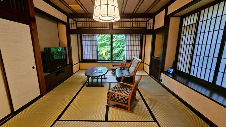 水上の町を車で走っていると、確かに、人があんまりいない! 街を歩けばやたらと海外からの旅行客の方に道を尋ねられ、電車に乗れば海外からの旅行客の方がどっしりお座りになっている、そんな東京の景色とは全く異なる穏やかな時間が流れています。そして、お宿も広々! 今回は水上駅からも少し離れた山里の料理宿、「蛍雪の宿 尚文(しょうぶん)」に宿泊させてもらいました。9室すべてに部屋風呂があり、すべてがスイートルーム! それもそのはず、現在の館主で3代目となる歴史のある旅館なのですが、コロナ禍を前にリニューアル。ネット環境もバッチリよく、ひとつひとつのお部屋が広くなり、それぞれのお部屋で夕食も朝食も楽しめる、水上温泉郷の中でもハイクラスなプライベートな宿なのです。
