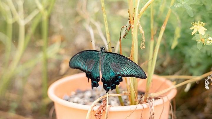 蝶が地面に止まっていることがあるので、踏まないように気をつけて…!