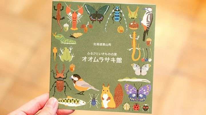 オオムラサキ館のパンフレット。生き物たちの可愛いイラストがいっぱい…!