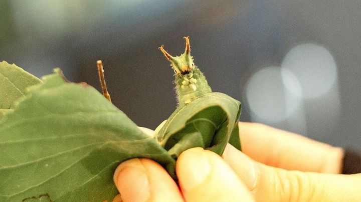 ご覧ください!こちらがオオムラサキの幼虫です!