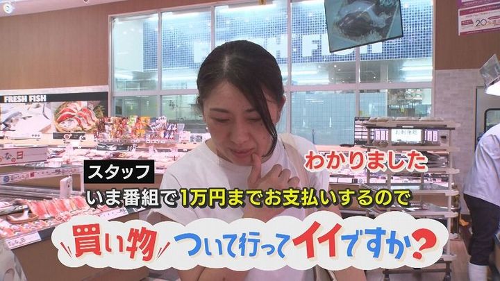 番組スタッフ:「いま番組で1万円までお支払いするので“買い物ついて行ってイイですか?”っていう企画をしていまして。よければついていってもいいですか?」飯島さん:「わかりました」