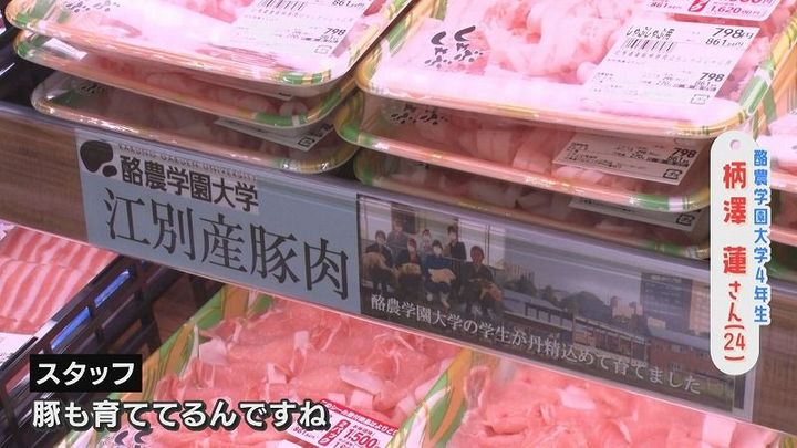 番組スタッフ:「(大学で)豚も育てているんですね」柄澤さん:「そうですね。しょうが焼きでも作ろうかな」