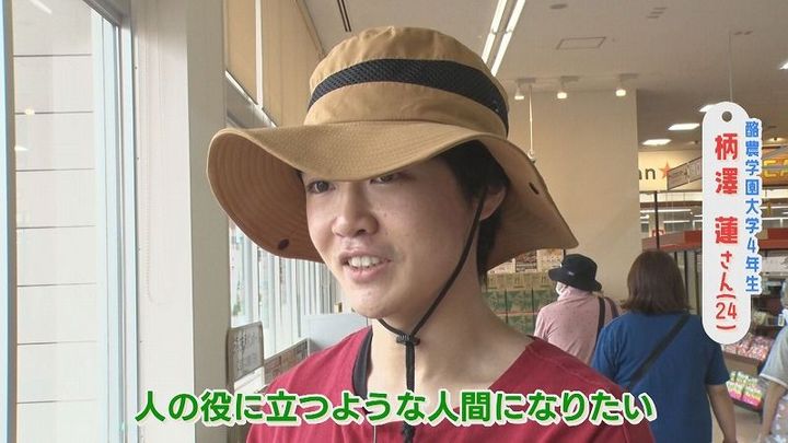 番組スタッフ:「どういったお勉強をしている?」柄澤さん:「農業経済学っていうのを勉強しています。農産物の市場がどういう風になっているのかっていう」