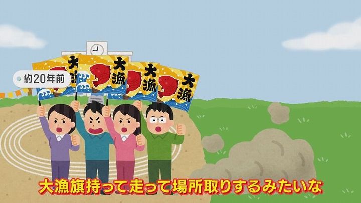 飯島さん:「運動会の場所取りすごいですよね。大漁旗を持って走って場所取りするみたいな。あれ初めて見たときすごいなと思ったんですよね」