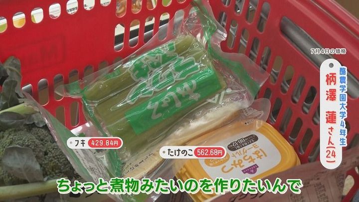 番組スタッフ:「なかなか一人暮らしでは選ばないラインナップだと思うんですけど…」柄澤さん:「煮物みたいのを作ろうかなと」