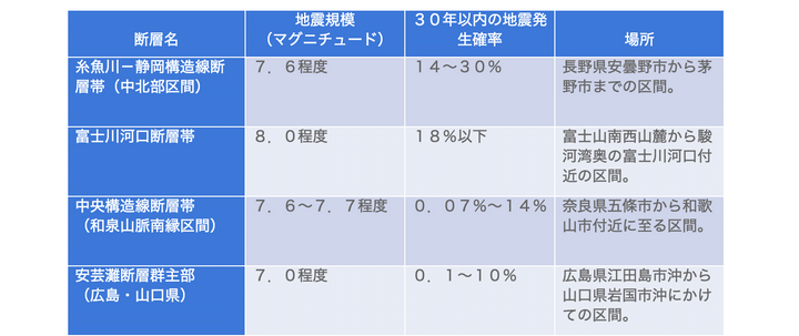 日本には、Sランクに該当する活断層帯が全国に30以上存在しています。今後、大きな地震の発生が想定される断層をいくつか紹介します。