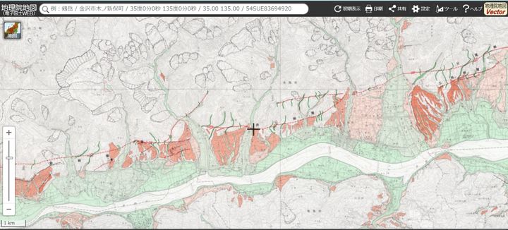 活断層の場所は、国土地理院の活断層図で調べることができます。