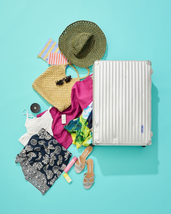 ハワイに行く時はここぞとばかりにカラフルな服を楽しむつもりで華やかな色のワンピースを。スーツケースに入れるとかさ張りますが、いざ現地で探すとなかなかお気に入りが見つからないので、つば広の帽子も荷物に詰め込んでいきます。この帽子は柔らかい素材であまり形が崩れないのでスーツケース向きかもしれません。