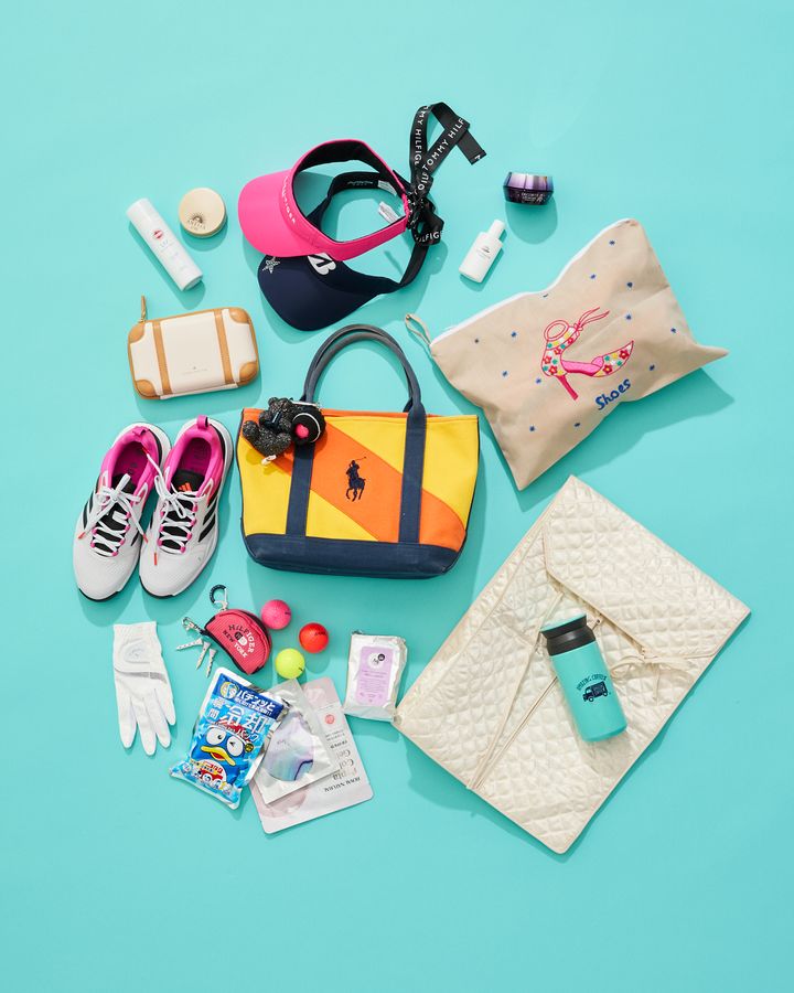 CA時代にバンコクのNARAYAで購入した衣装ケースは、適度なハリがあり中の服がシワになりにくいのがお気に入り。スーツケースの中の整理整頓に役立ちます。普段の服はベーシックカラーが多いですが、ゴルフウェアだけはカラフルな派手めのウェアも楽しんでいます。暑い時期は汗もかくのでサンバイザーは複数持ち。ウェア以外にも日焼け止めやアフターケアグッズ、体を冷やすグッズはたくさん持っていきます。