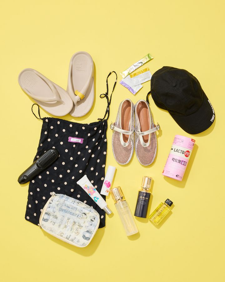 旅行先では、いつも以上に丁寧にスキンケアをしたいので基礎化粧品は信頼しているクレド・ポーをあえてのフルボトルで持参。コードレスのストレートアイロンのアゲツヤは、ブラシ部分が熱くならないので旅行先ですぐにパッキングしなければいけない時も便利です。