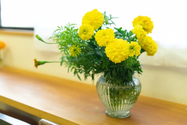 開花期間中、土日のみ「マリーゴールドのつみとり」を行います。見るだけで元気をもらえるビタミンカラーをお部屋にも。