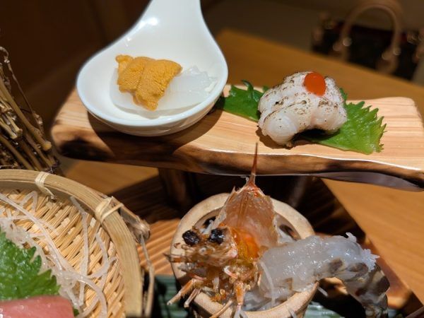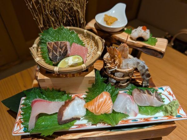 ハモやタコなど夏を感じる鮮魚、ウニが盛られたイカや車エビと10種類のお刺身♪ どれから食べようか悩んでしまいます。