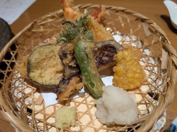 ゴロっと大きく切られているのにめっちゃ柔らかなサーロイン。 お肉の旨味がたっぷり感じられる~。 次は「天ぷら盛り合わせ」(980円)。
