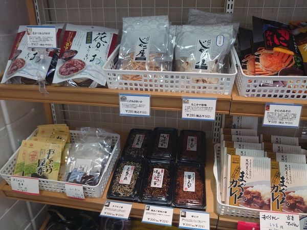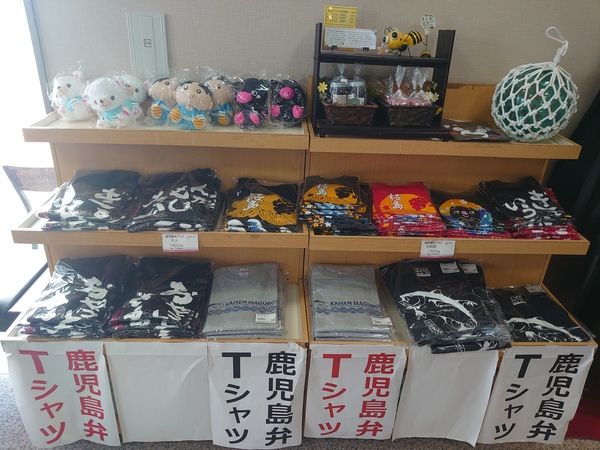 物販エリアには、鹿児島らしさ満載のお土産物や、魚介類を原料とした食品、新鮮な冷凍マグロを購入できます。また、全国への発送もされています。