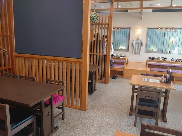 店内のどの席からも、窓の外に広がる串木野の山の景色を楽しめるため、開放感があります。車椅子・介助トイレ完備なのもまた素晴らしい!